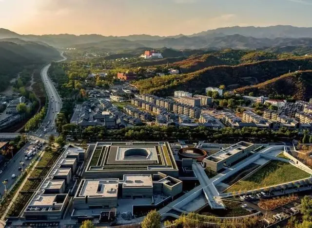 承德博物館因位于古建筑群中,建筑限高7米,因此建造時地基整體下挖了約6米,下沉式庭院如同新的“地面”“藏”在環境之中,庭院邊緣結合當地古建中常見的臺基形式,做了層層跌落的臺地。