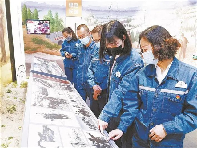 在七師胡楊河市文化館,新疆北方建設集團三利公司的黨員們聆聽革命故事,感受軍墾文化(資料圖片)。