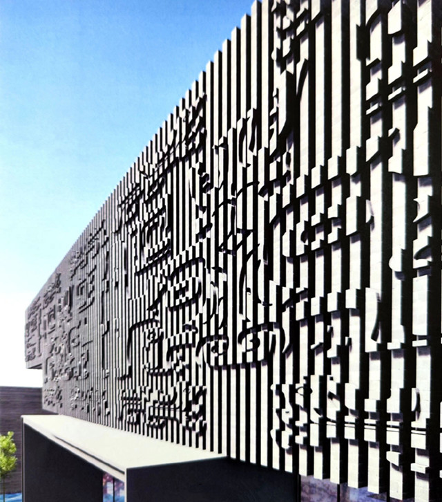博物館設計占地面積約7542 ㎡。新館設計理念以西周文化為準,博物館入口,設計如同書本翻開的旋轉豎向遮陽板,上面篆刻《扶風歌》《周禮》等文字,讓入口長廊形成進入博物館的文化儀式空間。立面設計以扶風青銅器紋理元素為肌理符號,貫徹地域文化理念,打造具有獨特扶風符號的地域文化博物館;博物館前場設計了草坡廣場空間,文化與趣味,融為一體。