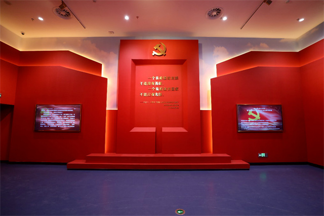 藝術手法展覽設計中從主題、內容、精神、空間、體驗、形式等多方面綜合表達,打造出一座藝術性的表現空間,以“聲、光、影、物”設計概念重織時空、展示文物、講述黨史、展望未來,給觀者以全新的體驗空間。