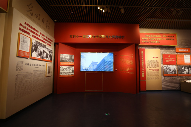奮勇爭先 推進中國特色社會主義南京實踐第三部分講述的時間跨度是黨的十一屆三中全會召開以后,開啟改革開放和社會主義現代化建設的偉大征程。通過金屬字、多媒體專題短片、圖文展板、立體字組合等形式結合,展現實施改革開放這一偉大戰略決策。