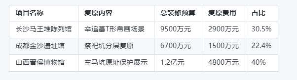 博物館裝修報(bào)價(jià)的15%以內(nèi)。某地市級(jí)博物館的宋代磚室墓復(fù)原項(xiàng)目,總裝修預(yù)算2000萬(wàn)元中,復(fù)原費(fèi)用為280萬(wàn)元,占比14%。